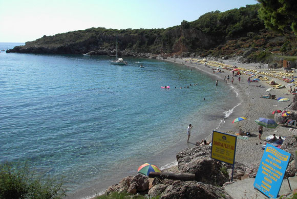 Добавлю фотографии видов этого красивого пляжа с моря. Сюда можно добраться как с моря, так и на машине, немного не доезжая до Петроваца со стороны С.Стефана есть указатели.